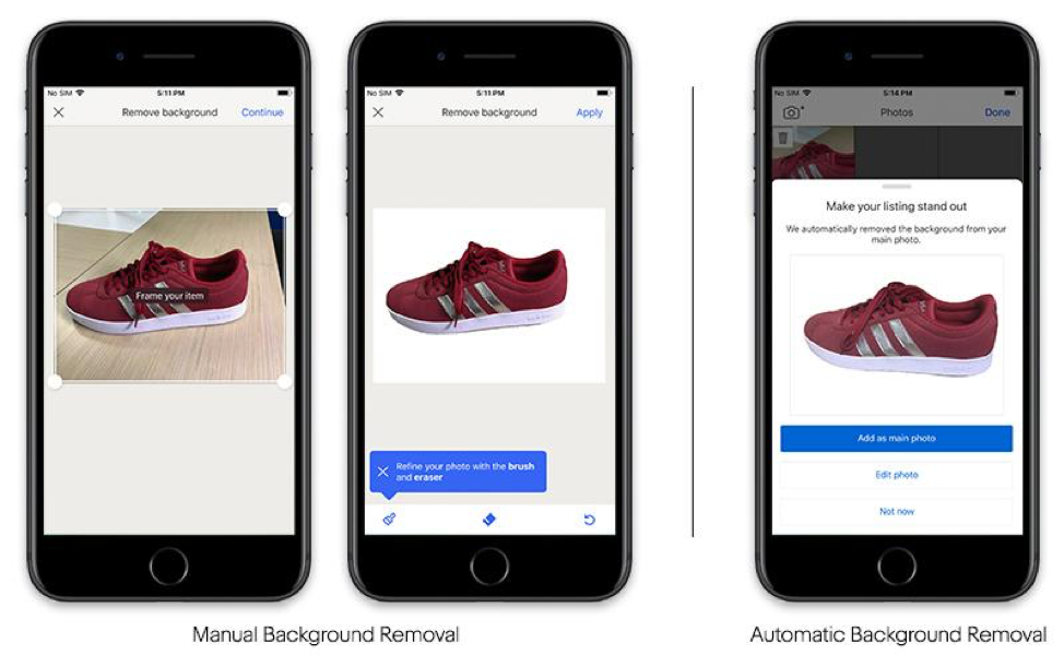 Above: eBay’s new picture cleanup function eliminates the background from pictures