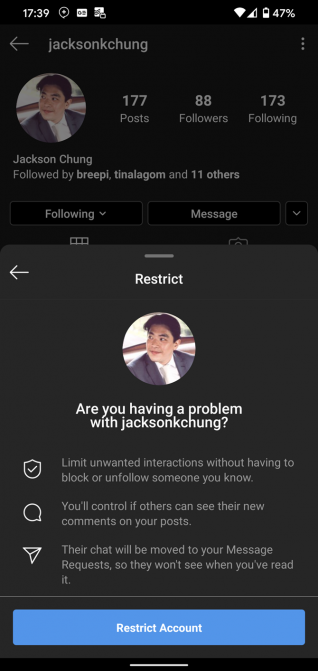 To limit somebody, talk over with their profile, faucet the three-dot Menu button within the top-right, and make a choice Limit. Folks received’t know that you just limited them, and you’ll talk over with this window to opposite the method.
