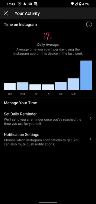 If you wish to reduce to your utilization, you’ll use the Set Day by day Reminder serve as. Make a selection an period of time, and Instagram will notify you while you’ve hit that restrict for the day.