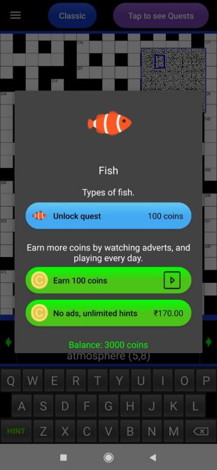 In quest mode, clues are arranged via classes, which is a groovy and other option to means a crossword puzzle. To liberate classes, you want to spend in-game issues, which you’ll earn via enjoying the sport incessantly, staring at advertisements, or purchasing them thru in-app purchases.