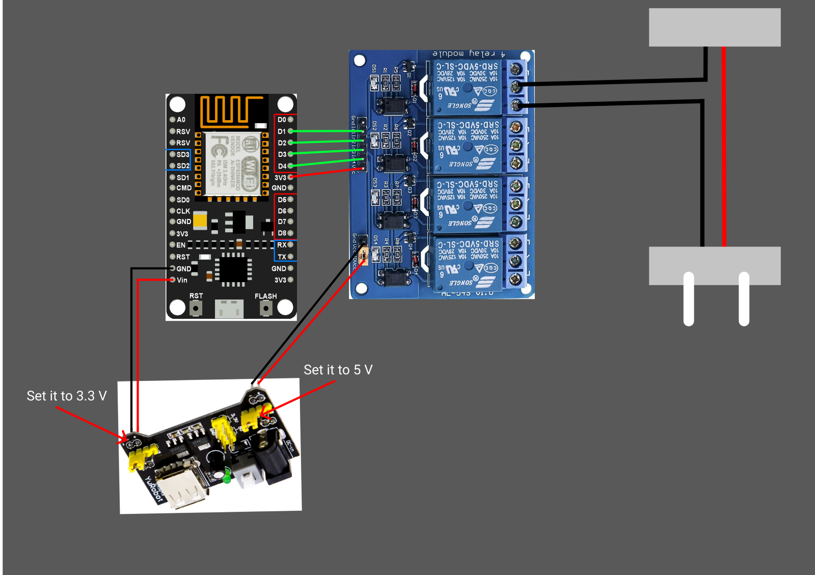 • Relay board — (2 channel, four channel, eight channel in line with your wishes) ($1 in aliexpress)