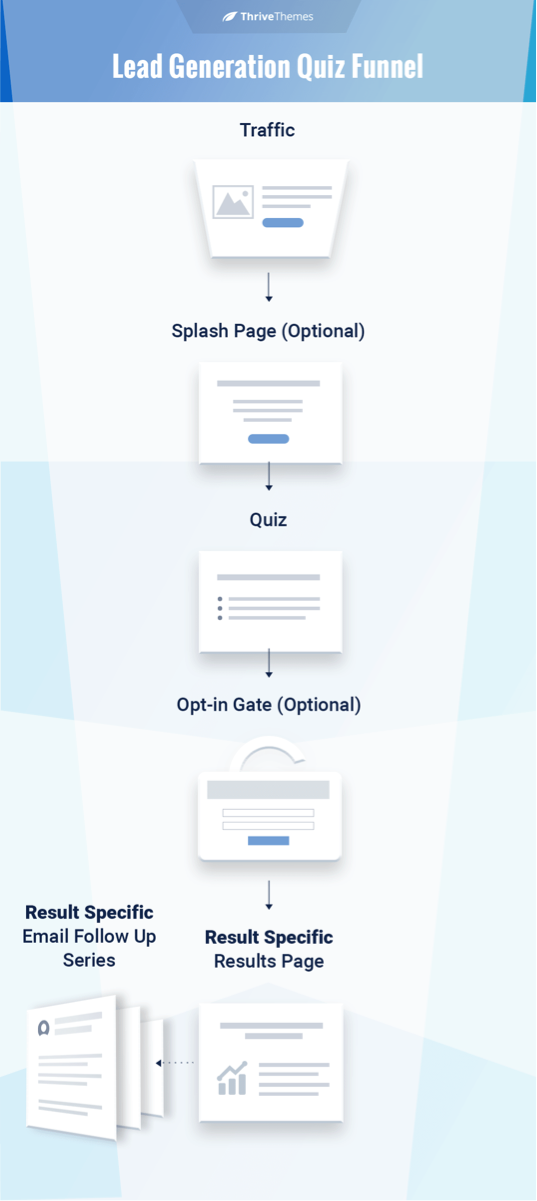 You’ll plot out the entire pages and steps on your quiz in a lead technology funnel, like this one from Thrive Issues.
