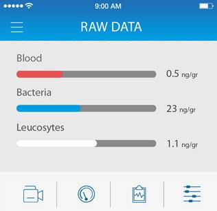 Above: OutSense’s clip-on instrument displays human waste for early indicators of illness.