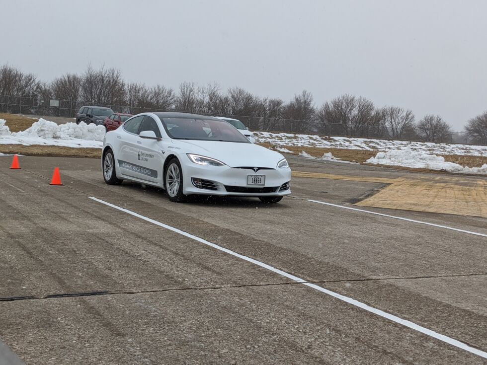 To that finish, NADS has a variety of instrumented check cars which is able to do a little on-road affirmation of simulator findings. On this case, I visited a decommissioned stretch of close by runway, a couple of 3rd of a mile (500m) lengthy. As with the riding sim, I were given to play guinea pig in the back of the wheel of a white Tesla Type S, with directions to observe a chase automobile with the automobile’s adaptive cruise keep an eye on and lane holding engaged. (The runway have been marked up with lane markers to be legible to the automobile’s lane-keeping digicam sensors.) Each and every time, I used to be given a special process to accomplish whilst cruising in the back of the chase automobile—looking for NADS’ homepage at the Tesla’s infotainment display screen, composing an e mail on my telephone, and counting unfastened trade from the cupholder. Someday, the chase automobile would brake or trade lanes to expose a lane closure, requiring me to react.