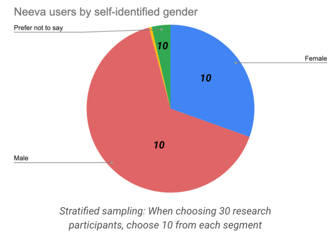 We then needed to resolve easy methods to keep away from development just for testers that have compatibility the “early adopter” profile. As soon as testers had been on our platform, we carried out “stratified sampling” according to demographics, which is only a fancy manner of claiming we sampled inside of each and every class after which mixed the ones sub-samples to create the entire pattern. This ensured each and every demographic was once correctly represented in our pattern. We used this system each when deciding on customers to ballot for comments and when deciding on customers to take part in analysis. This ensured that almost all point of view didn’t get over-sampled.
